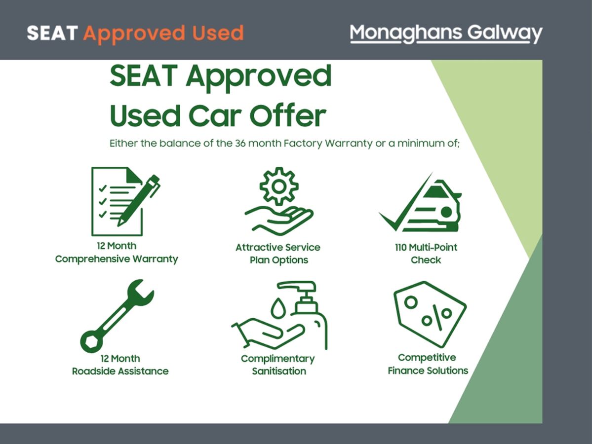 All our SEAT Approved Used Cars come with a 12-Month Approved warranty as standard.