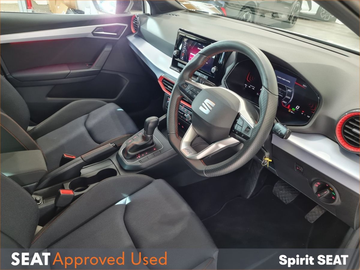 Stunning 2025 Seat Ibiza FR Finished in Pearl White. Specification includes: FR Sport Interior, Upgraded Diamond Cut Alloys, Rear Parking Sensors , Apple Car/Play, Android Auto ,Dual Climate Control, Cruise Control , 2 years warranty.