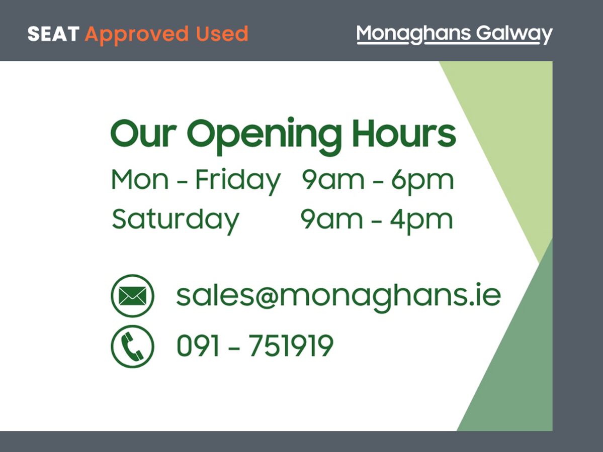 Monaghans Galway is a family business, established in 1955. We pride ourselves on customer service and endeavour to provide the best experience possible. Our high Google review score of 4.9 stars is testament to this. Air Conditioning, Central Locking, Immaculate condition, Electric Windows, Airbag, Cruise Control, Fog Lamps, Privacy Glass, Centre Armrest, Multi-function steering wheel, Traction Control, Parking Sensors, Trade in accepted, Bluetooth, Isofix, History Checked, Finance Checked, Apple Car Play, Android Auto, Active Safety Braking / City Brake / Collision Alert, Stop/Start Button, 2 Keys, External Devices Connectivity, Cup holders, Stability control