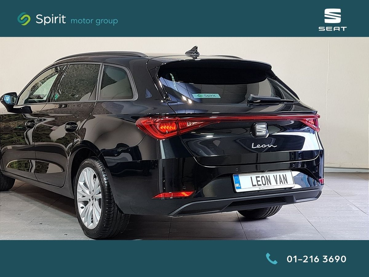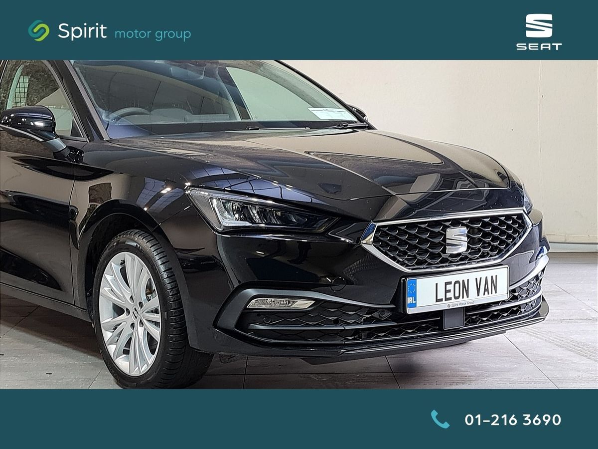 2026 Seat Leon SE+ Commercial finished in Midnight Black . Specification included upgraded Dynamic 17'' Alloy Wheels , Front and Rear Sensors , Rear Camera ,LED Lights,Sat Navigation , Lane Assist ,Ambient Lighting , Auto Lights, Auto Handbrake , Adaptive Cruise Control,AutoHold , Apple CarPlay/Android Auto, Privacy Glass.