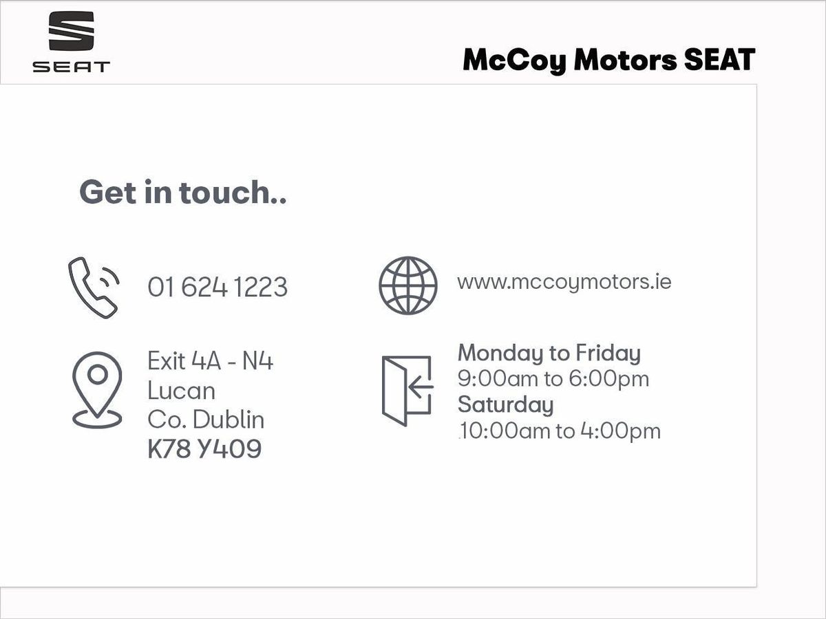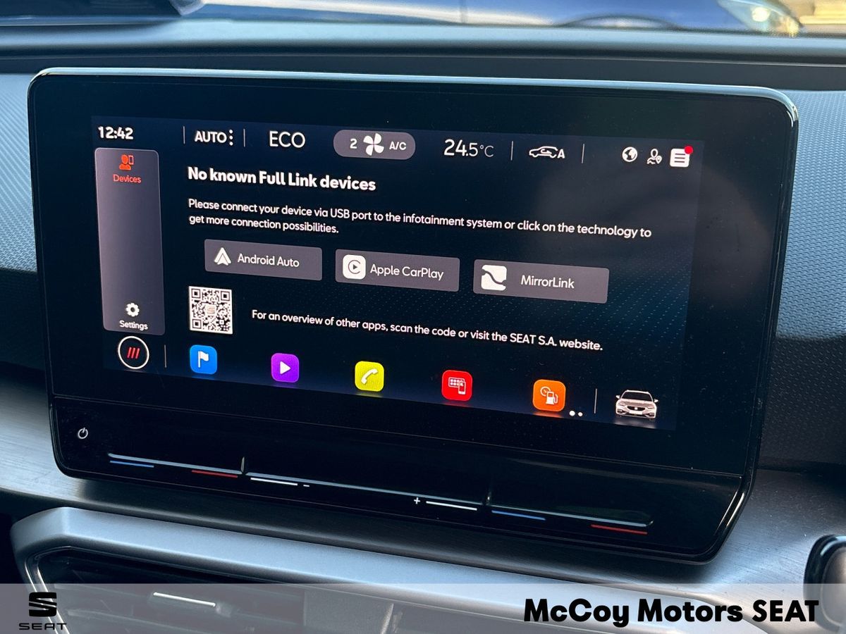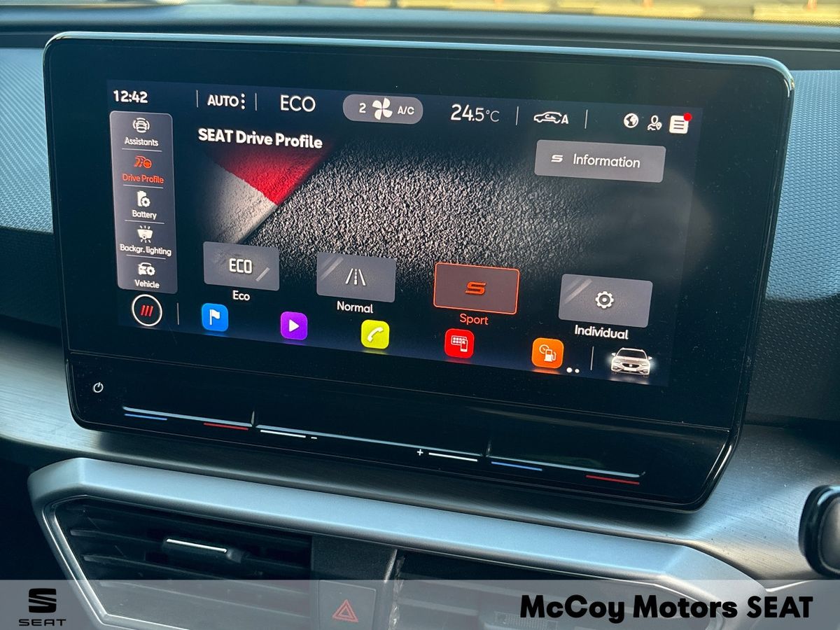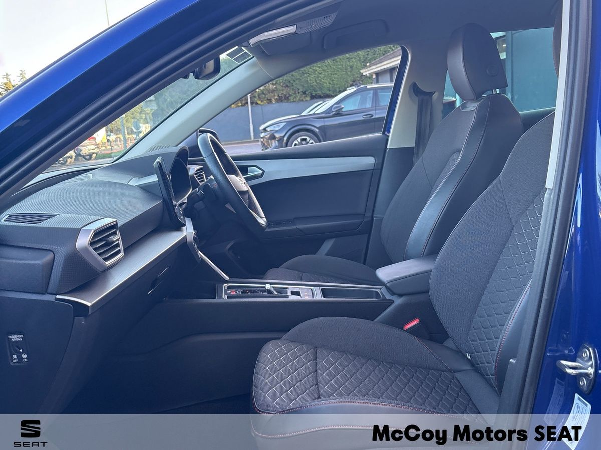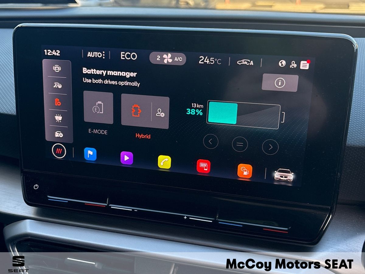 ***NOW AVAILABLE*** SEAT LEON FR 1.4ETSI PLUG IN HYBRID 204HP --- LOW RATE FINANCE CAN BE ARRANGED --- 12 MONTH WARRANTY --- SOME FEATURES INCLUDE: LED LIGHTS -- 18" FR ALLOY WHEELS -- TOUCH SCREEN DIGITAL DISPLAY -- DIGITAL DASH -- CLIMATE CONTROL -- CRUISE CONTROL -- ALCANTARA INTERIOR -- WIRELESS CHARGER -- AUTO LIGHTS -- APPLE CAR PLAY AND ANDROID AUTO -- LOW TAX AT JUST 140 EURO PLUS MUCH MORE -- CALL OUR SALES TEAM ON (01) 6241223 OR EMAIL SALES@MCCOYMOTORS .IE TO ARRANGE A VIEWING ***